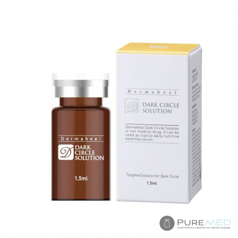Dermaheal Dark Circle Solution is an ampoule for needle mesotherapy that illuminates, brightens and moisturizes the skin under the eyes. Reduces shadows and signs of fatigue, giving the effect of a refreshed and radiant face with a younger look. The ampoule smoothes wrinkles under the eyes while preventing the formation of new ones, improves skin elasticity by increasing the synthesis of collagen and elastin. Dermaheal Dark Circle Solution reduces the synthesis of melanin, thanks to which it prevents the excessive accumulation of dye, which stops the formation of dark circles under the eyes. Application: Wrinkles under the eyes, Shadows and "bags" under the eyes, Dry skin around the eyes, Prevents the aging of the skin around the eyes, Composition: Biomimetic Peptides: OLIGOPEPTIDE-34: reduces melanin synthesis, moisturizes the skin, OLIGOPEPTIDE-24: reduces wrinkles, affects the ability to multiply cells, DECAPEPTIDE-4: enhances elasticity, influences the synthesis of elastin and collagen, strengthens protein metabolism, smoothes the skin. What does the skin look like immediately after the treatment? Immediately after the treatment, the skin is slightly swollen, slight bruising may appear, all of this passes within 24 hours. What are the effects after the treatment with the Dermaheal Dark Circle Solution ampoule? After the first treatment, you can see a significant difference! The shadows under the eyes brighten up and fine wrinkles are smoothed out. The skin brightens and tones. Dermaheal is a brand that offers excellent mesotherapy products: Dermaheal HL - ampoule preventing hair loss, Dermaheal HSR - anti-aging ampoule, Dermaheal LL - ampoule for injection lipolysis, Dermaheal SR - an ampoule intended for acne-prone skin, Dermaheal SB - an ampoule that brightens discoloration, illuminates the complexion, Dermaheal Eyebag Solution - an ampoule for mesotherapy under the eyes, improves microcirculation, reduces "bags" under the eyes. Contraindications: pregnancy, breastfeeding, acute bacterial local skin diseases, local inflammation, fever, erythema, decompensated diabetes, Cancer, allergies to the preparation used, taking medications that thin the blood, e.g. aspirin. Package: 1 x 1.5 ml ampoule To purchase the entire package, add 5 items of the product to the cart. The product may only be used by professionals. By purchasing the product, you declare that you are a doctor or cosmetologist trained in aesthetic medicine.