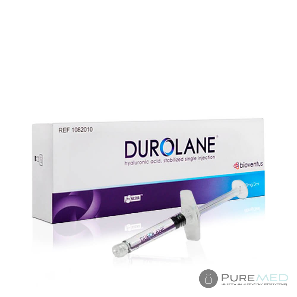 DUROLANE zawiera kwas hialuronowy pochodzenia niezwierzęcego, wyprodukowany w drodze biosyntezy, który został oczyszczony i poddany stabilizacji. Iniekcje kwasu hialuronowego do stawów przywracają lepkość i sprężystość płynu maziowego, dzięki czemu mogą zmniejszyć się dolegliwości bólowe i zwiększyć ruchomość stawu. Produkt jest przeznaczony do iniekcji dostawowych w leczeniu objawowym choroby zwyrodnieniowej stawów o nasileniu od łagodnego do umiarkowanego oraz w leczeniu bólu pozabiegach artroskopowych. Nie zaleca się stosowania u osób z nadwrażliwością na substancje składowe produktu. Leczenie objawowe powiązane z leczeniem bólu o nasileniu od łagodnego do umiarkowanego, wynikającego z choroby zwyrodnieniowej stawów skokowych, łokciowych, nadgarstkowych oraz międzypaliczkowych palców rąk i nóg. Preparat jest również wskazany w leczeniu bólu spowodowanego zabiegami artroskopowymi w obecności choroby zwyrodnieniowej stawów w okresie trzech miesięcy po wykonaniu zabiegu. Preparat znajduje się w opakowaniu jednodawkowym - jeden zastrzyk. Można go wstrzykiwać tylko jeden raz w trakcie całego cyklu leczenia. Zalecana dawka dla stawu kolanowego, biodrowego i barkowego wynosi 3ml. W przypadku stawów średniej wielkości (np. staw łokciowy, skokowy) zaleca się dawkę 1-2ml, a w przypadku małych stawów (np. staw kciuka) około 1ml.