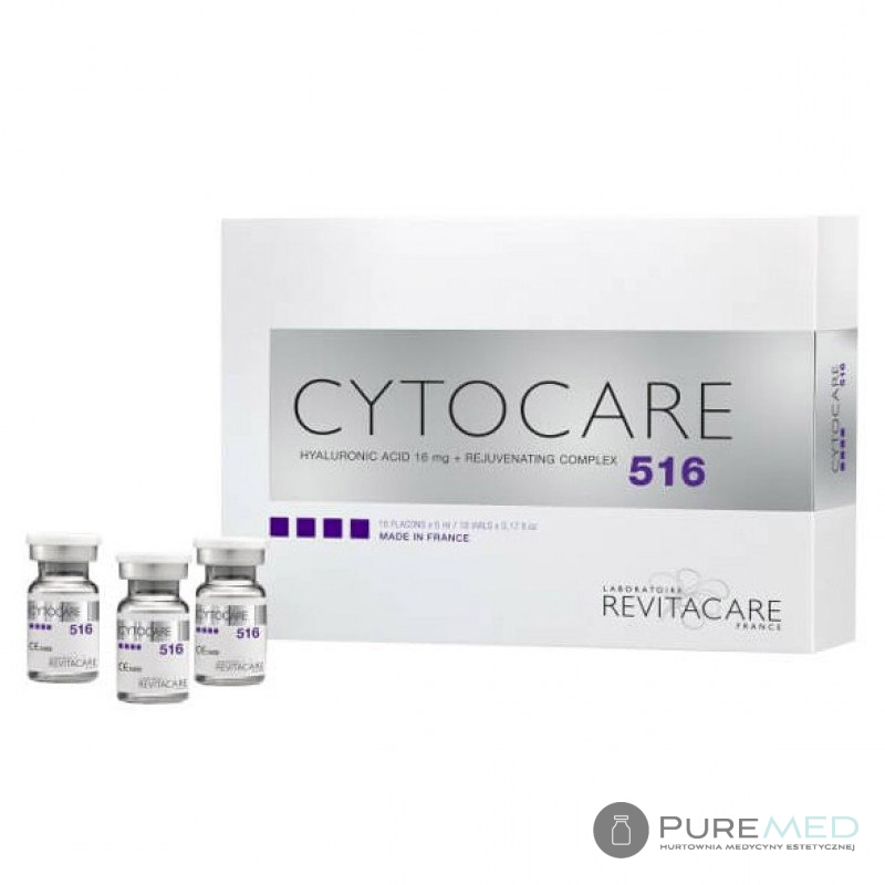 CytoCare 516 — эксклюзивный мезотерапевтический коктейль от французской лаборатории RevitaCare, который омолаживает и разглаживает кожу. Исключительная эффективность заключается в составе, в дополнение к содержанию гиалуроновой кислоты, CytoCare состоит из 55 активных ингредиентов, включая витамины, неорганические соли и аминокислоты. Благодаря CytoCare® сохраняется биологический капитал кожи и останавливаются эффекты старения. Интенсивное увлажнение и регенерация кожи, ее заметное улучшение состояния – это лишь некоторые из преимуществ, получаемых после применения CytoCare 532. Синергетическое действие витаминов, аминокислот и минералов с гиалуроновой кислотой ускоряет регенерацию клеток.